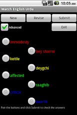 English Urdu (romanised) word match game helps to build your vocabulary.English Urdu (romanised) word match learning game helps to build your vocabulary. Advanced mode randomizes from the full dictionary, rather than the most commonly used words. Revise lists before you play or just learn a word of the day.